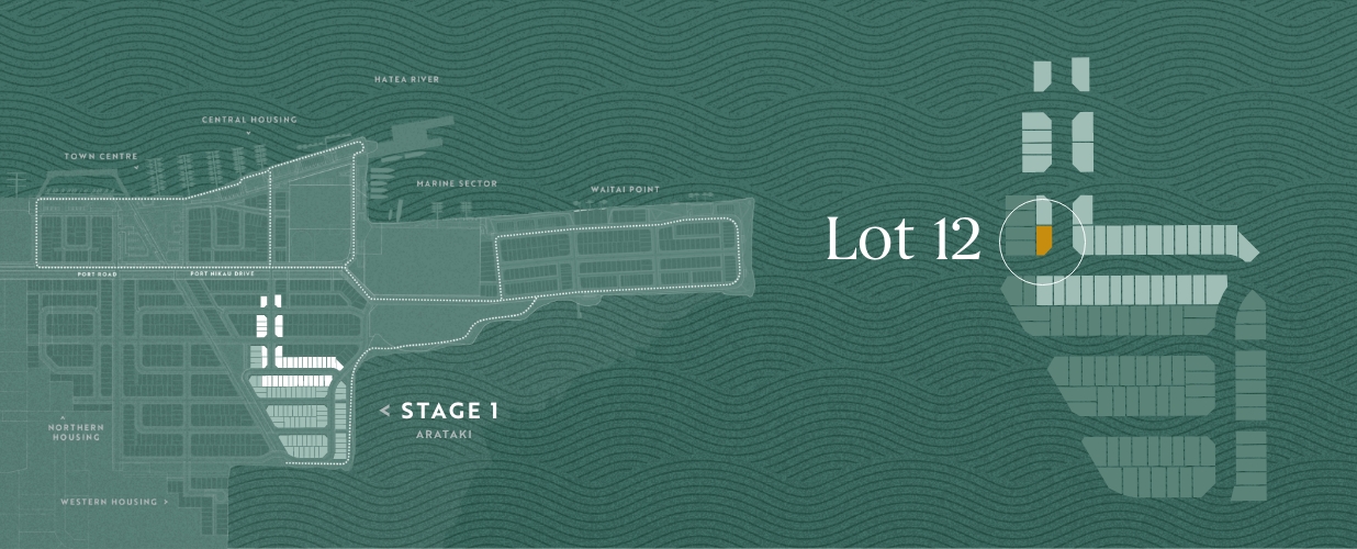 This well positioned site is ideally suited for a larger single-storey home with four bedrooms. Enjoy close proximity to waterfront amenities and the future Port Nikau town centre, as well as handy access to the local boat ramp, superyacht marina, and future Port Nikau park facilities.